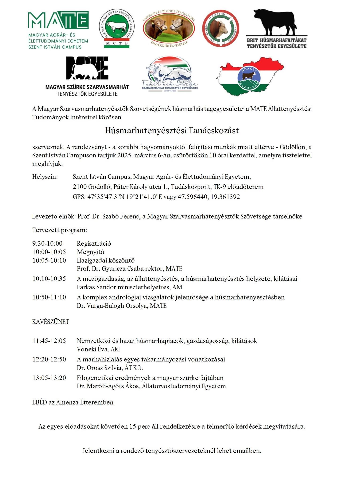 A "keszthelyi" Húsmarhatenyésztési Tanácskozás idén kivételesen Gödöllőn kerül megrendezésre 2025.03.06.-án! Aktuális témákkal, kiváló előadókkal! Mindenkit várunk szeretettel!