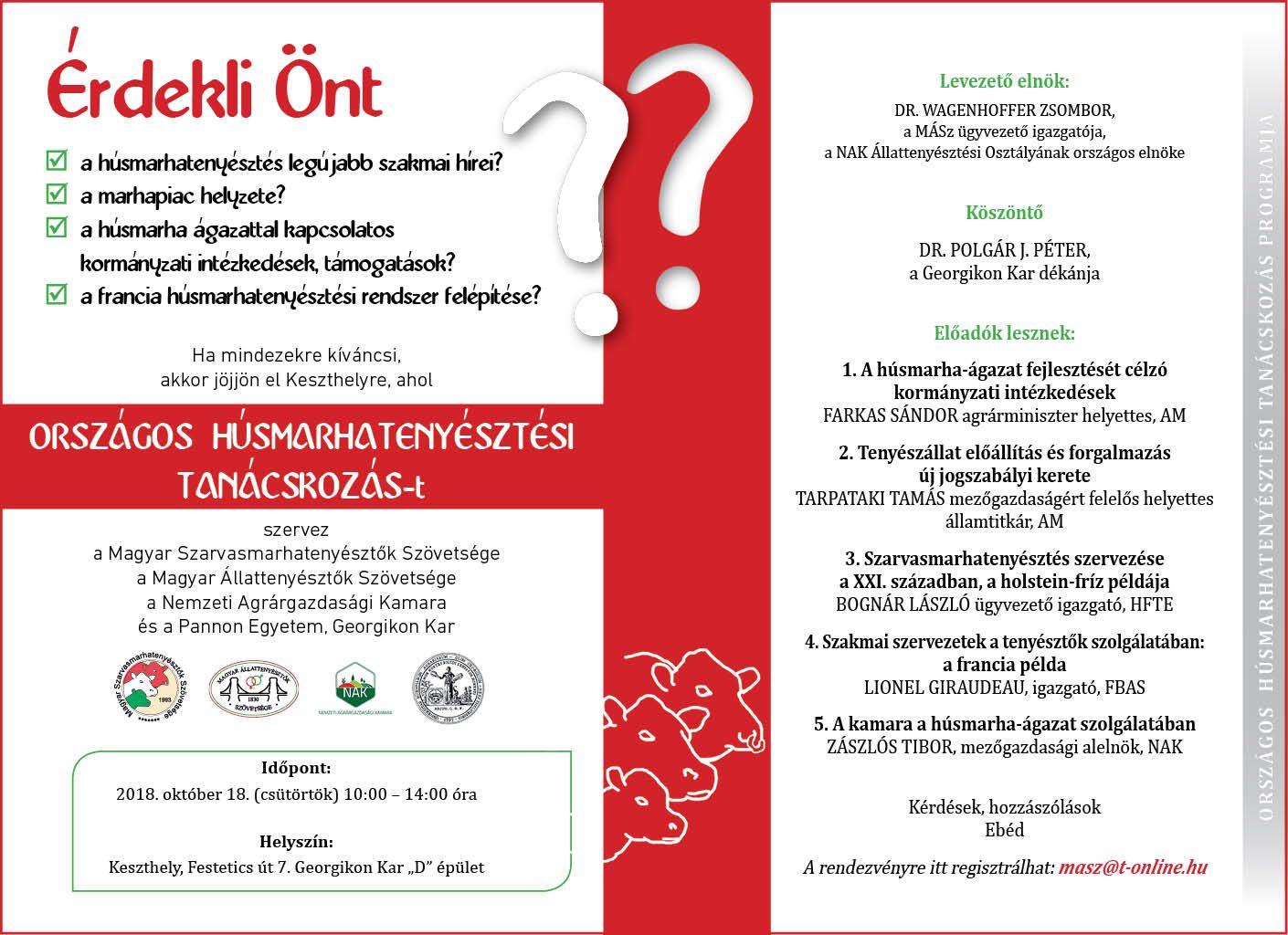 Alább található a Keszthelyen megrendezésre kerülő, Országos Húsmarhatenyésztési Tanácskozás meghívója, benne a részletes program leírással.