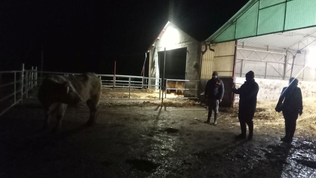 2021.11.29.-én a nap zárásaként Kaszaperre érkeztünk, ahol Csürhés Tamás üszőit küllembíráltuk, illetve a tenyészetben STV indítást is végeztünk. A munka végén már a lámpafény segítségére is szükség volt.